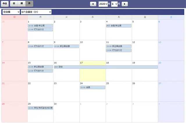 予定表との連動により、予定に使用する設備を設定して予約することもできます。