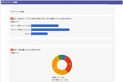 設問ごとの回答結果や、回答者ごとの回答内容がご確認いただけます。