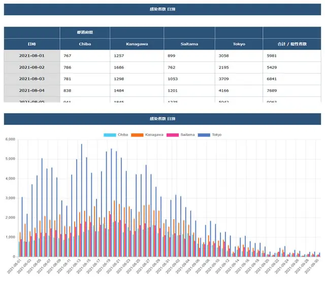 データは表示方法を表か縦棒グラフから選択して分析を行えます。