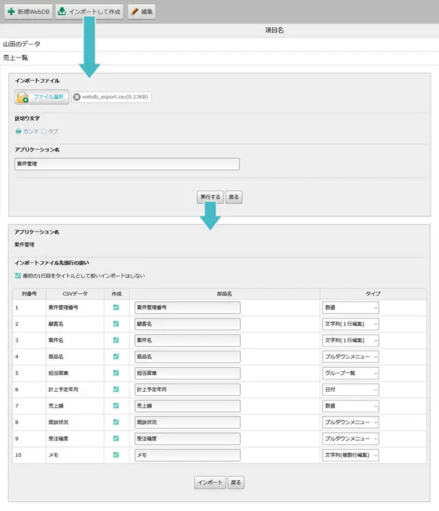 データの取り込みがExcel(CSV)ファイルをインポートでかんたんに出来ます。