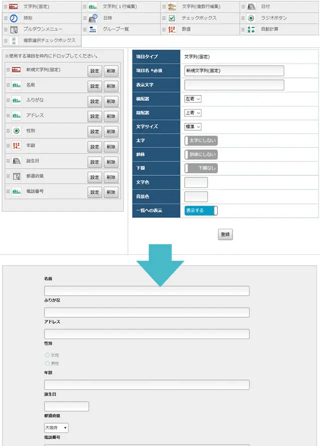 フォーム画面の項目をドラッグ&ドロップで編集できます。